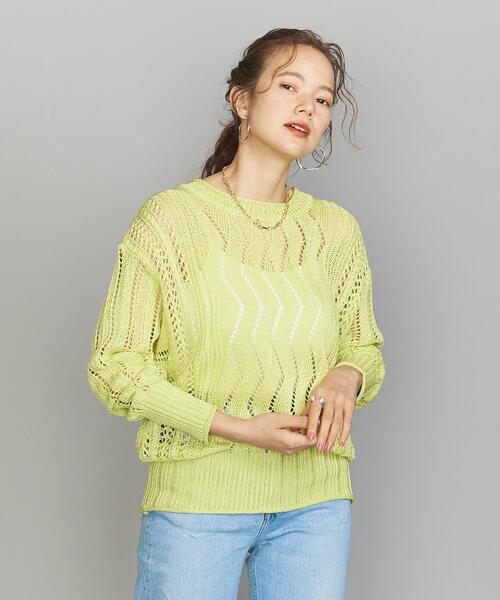 繊細な透かし柄が目を引くロングスリーブニット。 存在感のあるデザインは、キャミソールやタンクトップを重ねたレイヤードスタイルが様になる一着です。 クルーネックのスタンダードなサイズ感で合わせやすさも抜群。 ジャケットなどのインナーにも最適なシーズンライクなカラーバリエーションも魅力。 春夏のコーディネートを盛り上げてくれるアイテムです。 店舗へお問い合わせの際は、全国のBEAUTY & YOUTH各店舗まで下記の品名/品番をお申し付け下さい。 品名:BL OUD CROCHET LS TOP 品番:1613-599-3345
