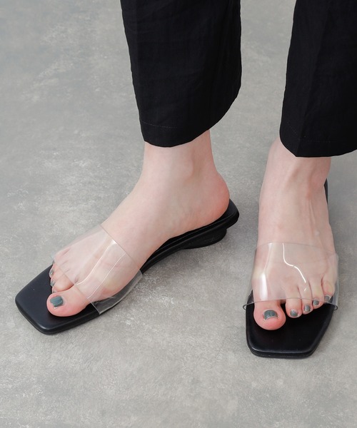 【クリア素材の透け感がおしゃれなフラットサンダル】 クリア素材のベルトがポイントのサンダル。 これからの時期におすすめな涼しげなデザインです。 今年らしいさりげないスクエアトゥで、トレンド感を取り入れることができます。 フラットなヒールはさらっと履けて普段使いしやすく、こなれ感をも演出してくれます。 落ち着いた色味のアイボリー、サックスブルー、ブラックの3色展開で大人な印象を与えてくれます。 ・トレンドのさりげないスクエアトゥ ・涼しげで透け感がおしゃれなクリア素材のベルト ・履きやすいフラットタイプ ■素材 甲材: ポリ塩化ビニル 底材: 合成底 ※着用、お取り扱いの際は、商品についている品質表示とアテンションタグを必ずご確認下さい。 ※商品タグに記載されている商品名がWEBでの表記名と異なる場合があります。 ※画像の商品はサンプルです。実際の商品と仕様、加工、サイズが若干異なる場合がございます。 ※照明の関係により、実際よりもやや明るく見える場合がございます。またパソコンなどの環境により、若干製品と画像のカラーが異なる場合もございます。予めご了承くださいませ。 【お気に入り登録】してお得な情報をCHECK!! ・「商品のお気に入り登録」で再入荷通知や、ラストの通知、セール通知も受け取ることができます。 ・「ブランドのお気に入り登録」で新商品や再入荷など、お得な情報を受け取ることができます。 __________________________________________________________