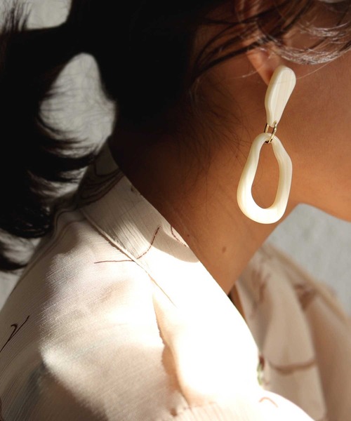 天然素材のような風合いが優しく。 気取らず自然な存在感。 天然石風フープイヤリングの登場です。 アクリルパーツに入った天然石の様な風合いが大人感を演出。 気取り過ぎない素材感だから、ちょっと大振りも気にならず、 軽いつけ心地で普段のお洒落使いにも丁度いい。 フープ上だから奥行を与えてすっきりとした印象に。 【ピアスver】56861881/AJ-01518 ピアス [アレルギー対応のニッケルフリー] 金属アレルギーの原因のトップとされるのがニッケル。 だけど加工がしやすいから多くのアクセサリーに使用されています。 ニッケルフリーとはニッケルという金属などで引き起こるアレルギーを 「防ぐことを目的」にニッケルをほぼ含まずにニッケルフリーメッキを使用しているもの。 ニッケルによる金属アレルギーをお持ちの方でも安心してお使い頂きやすくなっています! ※色味や柄の出方は、1点1点異なります。 ご指定は出来かねますので、ご了承の上お買い求めくださいませ。 ※こちらのアクセサリーはアレルギーを起こしにくい素材を一部使用しておりますが アレルギー反応に関しましては個人差がございますので全ての方に適合するものではございません。 ※ニッケルフリー素材は性質上変色する場合がございます。 変色による返品・交換は受付かねます為予めご了承の上お買い求めくださいませ。
