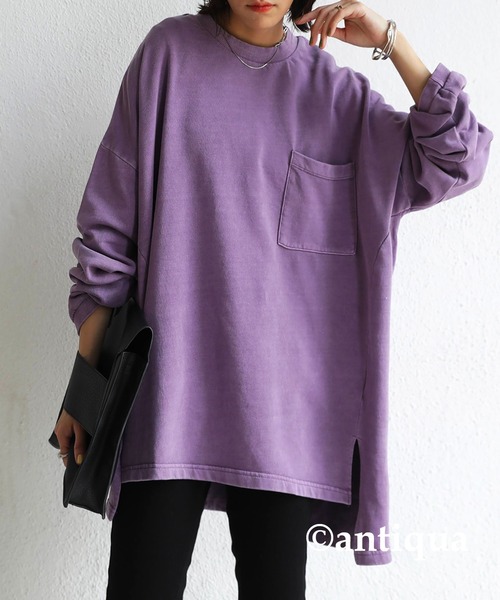 着るだけで、こなれる大人カジュアル。ヴィンテージ加工が、抜群の風合いを。ゆったりオーバーサイズ、前後差とサイドスリットを入れて抜群の雰囲気。ラフなのに拘り抜かれたお洒落なシルエットに仕上がるんです。柔らかいのにしっかりとした生地質感で、着心地良く通年使えるものに。上質で着心地の良い裏毛を使用して、風合い抜群に。≪DETAIL≫・程よい前後差と、サイドスリットでこなれる。・胸ポケットが可愛いレトロ感を醸し出す♪・オーバーサイズが大人可愛いをつくる!・程よく詰まった襟が今っぽさをプラス♪・たっぷり身幅でゆるっと体型カバーもできて嬉しいポイント!・前後差があるからこなれた雰囲気をつくる。・たっぷりの袖でたぽっと感で気になる二の腕をカバーし、萌え袖感がたまらない!≪FABRIC≫・まるで色落ちしたような極上の加工と風合い!・柔らかいのに、しっかりとした生地質感で着心地抜群♪・上質な綿100%の裏毛を使用しているから、肌アタリも良い。・薄すぎない絶妙な厚みで、通年使える使い勝手の良い仕上がりに!≪COLOR≫グレー・ベージュ・カーキ・ブルー・パープル の5色展開!≪SIZE≫FREE の1サイズ展開!■商品注意事項■※綿100%素材の為、色落ちする可能性がございます。ご了承の上お買い求め下さいませ。※その他お取り扱いに関しましては、商品に付属のアテンションタグをご覧ください。
