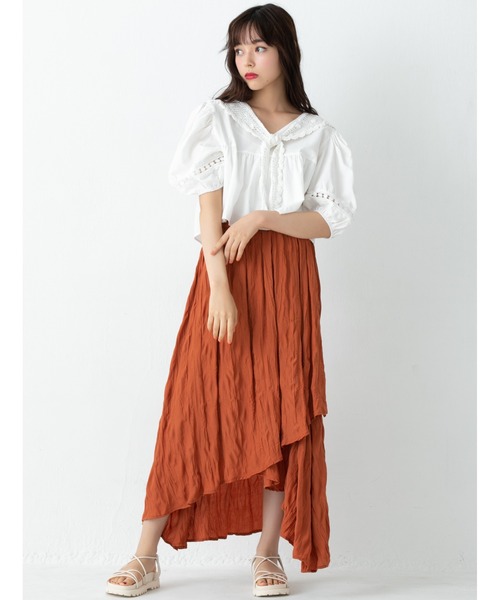 インスタライブ紹介アイテム / instagram & Youtube ご紹介アイテム 着るだけで毎日がハッピーになる “カジュアルポップ”なスタイルを提案◎ イレギュラーヘムが印象的に揺れるワッシャースカート やわらかな風合いのワッシャー生地を使用した、イレギュラーヘムデザインのスカート。歩くたびに軽やかに揺れ動くシルエットが、女性らしさを引き立ててくれます。ウエストの後ろ部分はゴム仕様になっているので、穿き心地の良さも魅力的なポイントです。 ※撮影時のライティング、PCやスマートフォンの環境により写真の色味が実際の商品と異なって見える場合がございます。ご了承の上お買い求め下さいませ。 ※モデル着用画像は実際の色と多少異なる場合がございますのでマネキン画像をご確認ください。 《 お知らせ 》 ▼商品のお気に入り登録 お気に入りアイテムの値下げ・再入荷・在庫1点などの通知を受け取ることができます。 ▼ブランドのお気に入り登録 新商品や再入荷、セール、クーポン配布などお得な情報を受け取ることができます。