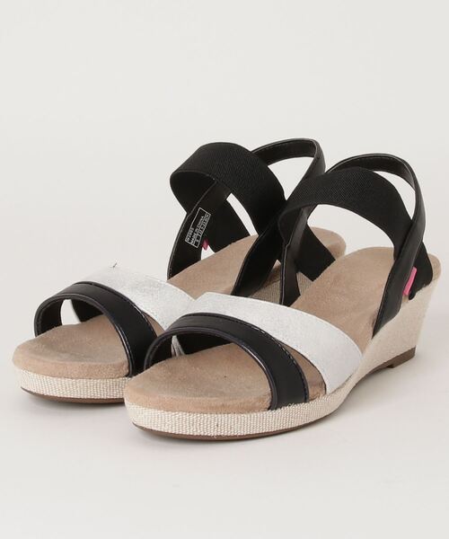 夏らしいラメ素材とメタリックのパイピングをアクセントにした少しリッチなカジュアルサンダル。足裏を包み込むフカフカのお椀形状のフットベッドが絶妙なフィット感を与えます。フカフカのクッションで足当たりが良いのは勿論、屈曲性の良いウエッジソールでストレスフリーな履き心地を実現しています。