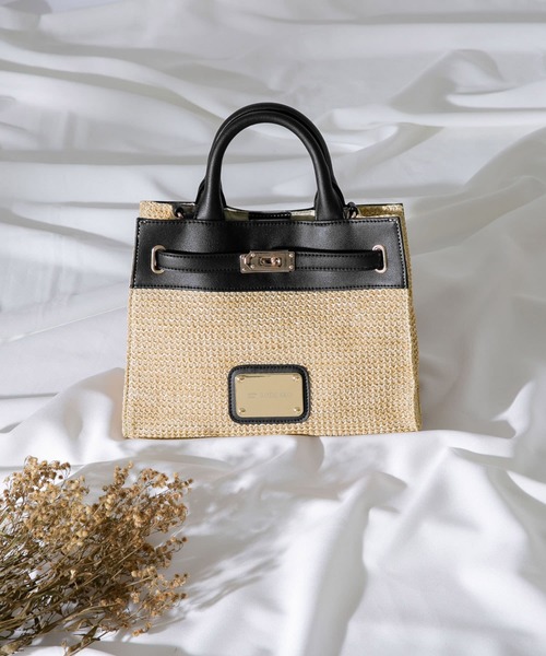 デイリー使いにちょうどいいサイズ感のスクエアバッグ。 程よいメタルデザインと異素材の組み合わせが、カジュアルからきれいめまでどんなスタイリングにも馴染みます♪気分や用途で使い分けができるショルダー付きも嬉しいポイント◎ ※底部分にICカード収納可能 総重量:約410g ※モデルの着用画像の場合、光の当たり具合により、実際の色味と異なって見えることがございます。色味は、商品単体の画像をご参照ください。