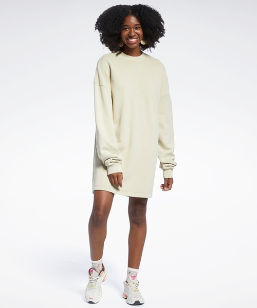 【リーボック公式ショップ】 ミニマリストデザインのフレンチテリードレス。 堅実なスタイルを選ぶなら、これがおすすめ。ニュートラルなトーンで落ち着いた雰囲気のウィメンズワンピース。天然土の顔料や鉱物から採取した染料を用いた生地を使用。リーボックロゴの刺繍をさりげなくあしらっている。ハイグレードなスパローブを思わせる、ソフトなフレンチテリー素材を使用。 商品の特徴 ●バットウィング袖 ●リブ仕上げの裾 ●オーバーサイズフィット ●リブ仕上げのクルーネック ●オーガニックコットン100%(フレンチテリー) ●ドロップショルダー●様々なシーン・コーディネートにマッチするベーシックカラー ●商品番号:GN4594(ベージュ) GN4592(サンドグレー) ※画像はサンプルのため、色味やサイズ等の仕様に変更がある場合がございます。 ※光の当たり具合や閲覧環境によって実際の色味と異なって見える場合がございます。