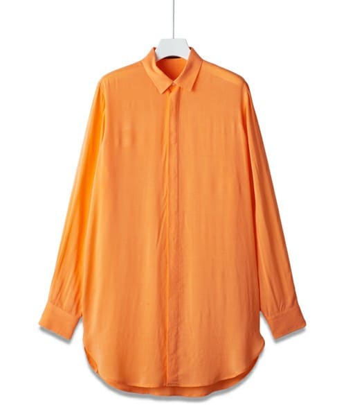 MIDWESTディレクターズレーベル「603」の人気アイテム、ロングシャツです。レーヨン素材、比翼仕立てのシンプルな無地タイプです。