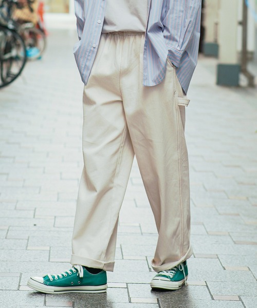【今季マストボトム!! 今、欲しいペインターパンツ!】今季押さえてたい、おすすめの一本、ペインターパンツ。これからのシーズンのスタイリングにも馴染む新定番の1本。コ―ディネートに合わせて選べるのも魅力的!カップルコーデやシミラールックまで幅広く使えるユニセックスアイテムです。お出掛けから在宅までストレスを感じることなく着用できる着心地はやみつきになること間違いなしです!全体的にゆったりなシルエットで、着た時にバランスがとりやすいデザイン。ヒップやわたりはやや太めでルーズ感出しています。ウエストはゴムなのでサイズごとにあまり差がなく楽に着てもらえます。丈感やお好みのルーズ感で選ぶのも良く、1サイズ上で敢えて超ルーズに履くのもおすすめです。■コーデ/Coordinate幅広いコーディネートで楽しんでもらえるパンツコーディネートも沢山載せているので是非参考にして下さい。~相性の良いテイストコーデ目安~■定番カジュアルコーデ→無地系デザインのロンT、Tシャツのトップスと合わせる◎■古着男子コーデ→カーハート、ハードロックカフェ、パタゴニア、ノースフェイスなど古着トップスと合わせる◎■ストリート、スケーターコーデ→バックプリントデザインのトップスを合わせる◎※掲載画像(商品、モデル着用とも)につきまして、撮影環境やお客様の閲覧されますパソコンや携帯電話キャリアによって、実際の商品とは多少異なった色に見える場合があります。また表示のサイズ感も実物とは若干異なる場合もございますので、予めご了承ください。※タグ・バーコードのついたシールには、サイトのご案内と異なるカラー名が記載されていることもございます。ご了承ください。- - - - - - - - - - - - - - - - - - - - - - - - - - - -【「お気に入り登録」でお得な情報が届きます】・「商品のお気に入り登録」で再入荷通知、ラスト1点の通知、セール通知などを受け取ることができます。・「ブランドのお気に入り登録」で新商品、人気アイテムの再入荷など、お得な情報を受け取ることができます。- - - - - - - - - - - - - - - - - - - - - - - - - - - -