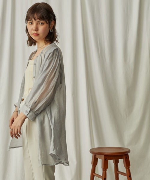 ショルダータックがトレンドライクなシアーブラウス フェミニンな印象のボリュームスリーブと、ほど良い透け感のあるシアー素材が魅力。 裾のフレアなシルエットは、腰回りのカバーもしてくれます。 ストレートパンツにレザーブーツを合わせれば、こなれ感のあるスタイリングをお楽しみいただけます。 ストレートシルエットのスカートを合わせれば、女性らしいスタイリングに。 ジャケットやトレンチコートを羽織れば、春らしさアップ。タンクトップやキャミソールの上に合わせれば、きれいめカジュアルな夏コーデの完成です。 お出かけシーンにおすすめの1枚。 【色展開】 ・グレー(灰 灰色) ・アイボリー(白 白色 ホワイト) ・サックス(水色 青 青色) 【サイズ展開】 Mサイズ 【お買い物をもっとお楽しみいただくために】 ▼商品のお気に入り登録▼ 完売カラーの再入荷通知や、ラストと1点の通知、プライスダウンしたセール通知も受け取ることができます。 ▼ブランドのお気に入り登録▼ 新作や再入荷等、いち早くブランドのお得な情報を受け取ることができます。