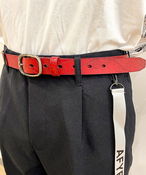 【rovtski select】さりげなく主張するこだわりのレザーベルト 【素材】 リアルレザーを使用しているので、安っぽくなく上品な雰囲気で、長く愛用していただけます。 【デザイン】 バックルにもベルトにもデザインを施しているので、 シンプルながらもこだわりを感じさせる作りとなっています。 【コーディネート】 デイリーにはもちろん、タックインスタイルのアクセントにも使えます。 【ギフトとしても大人気!】 プチプライスなので、友人や恋人へのプレゼントとしてもおすすめです!