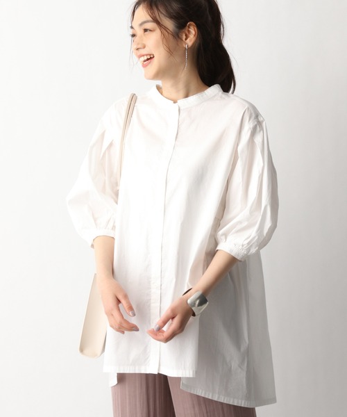 トレンドシルエットにサイドからバックにかけてのウエストギャザー切り替えでトレンドのAラインシルエットができあがるブラウス。どんなボトムスとも相性良く、夏には羽織としてお使いいただくことも◎ふんわりとしたシルエットで女性らしさを纏えます。