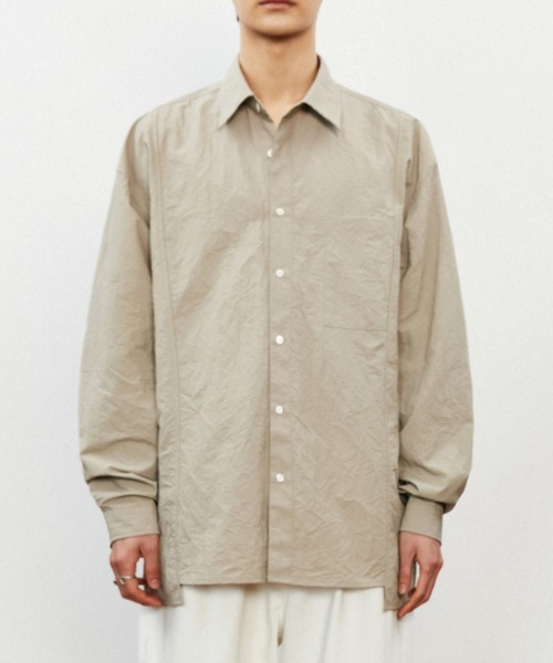 同色切り替えデザインのオーバーサイズシャツ!<VIVASTUDIO/ビバスタジオ>VIVASTUDIOは、2008年より「CORPORATE ROCK AND ROLL」というスローガンをメインコンセプトとしてスタートし、毎年洗練されたデザインと良質な素材にこだわり、注目を浴びているブランドです。<デザイン、シルエット>切り替えデザイン入りのゆったりしたシルエットのシャツです。身幅に余裕のあり、ドロップショルダーで今らしいリラックスしたシルエットになります。あえてシワになっているような加工をしているところもデザインポイントになります。スキニーやデニムパンツ、スラックスやワイドパンツまで様々なアイテムとも相性が良いです。<素材特性>高密度のナイロン素材を使用しております。<お買い物をお楽しみいただく為に>▼商品のお気に入り登録完売カラーの再入荷通知や、ラスト1点の通知、セールの通知も受け取ることができます。▼ブランドのお気に入り登録新商品や再入荷等、いち早くブランドのお得な情報を受け取ることができます。