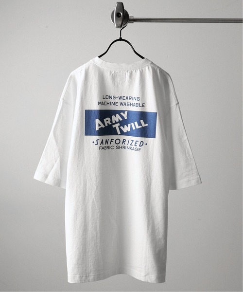 ARMY TWILL×JOURNAL STANDARD毎シーズン、ご好評頂いているARMY TWILLとの別注モデルバックにブランドロゴをプリントした直球なTシャツです。ホワイト、グレーベースのボディにブランドロゴが映えるデザイン。ややゆったりとしたビッグシルエットにしているため、一枚で着用しやすいサイズ感。シンプルで使い勝手のいいアイテムに仕上がっています。【ARMY TWILL / アーミーツイル】ARMY TWILLと名付けられたこのブランドは、ストアブランドとして1940年以降に誕生。名前のとおりARMY TWILL素材を使用し、シャツやチノパンツを主に手掛けアメリカ軍だけでなくワーカー等の民間向けにも当時は販売されていました。ハードな環境に耐えられる素材と機能性を追求したディティールは洗練されたシンプルで着易いデザインが特徴となっています。**********************裏地:なし伸縮性:ややあり光沢感:なし生地の厚さ:普通**********************【スタッフ着用コメント】《スタッフH》身長:177cm/体重:65kg/普段サイズ:L/着用サイズ:Lサイズ感:オーバーサイズでビッグシルエットに着用できます。素材感:しっかりとした生地感で一枚で着用できます。着心地:さらっとしていて着易いです。**********************※商品の色味は、撮影場所や光のあたり具合などにより色味が違って見える場合が御座います 。また、お客様のお使いのPCのモニター環境などにより色味が違って見える場合が御座います。予めご了承の上ご注文下さい。