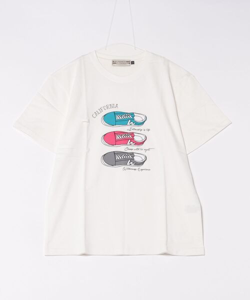 ◇スニーカープリントTシャツ◇☑detail素材は天竺。…天竺とは?・・・吸汗吸湿性に優れているため、夏場でもサラリとした肌さわりを楽しむことができるという点が特徴です。もう一つは横方向への伸縮性の高さ。着脱もしやすくストレスフリーな着用感です♪後ろ部分は左下に小さなポケットのデザインがアクセントになっています。ちょっと変わったTシャツをお探しの方におすすめです◎☑colorスタンダードなホワイトの他、夏らしいブルー、パープル、イエローの2色展開。シンプルになりがちなコーディネートにポイントで色味のあるTシャツを選べるのも春夏出来るチョイスです♪☑コーディネートフロントにスニーカーのポイントデザインなので柄のシャツやボトムスを合わせても◎夏らしくハーフパンツやサンダルと合わせてアウトドアで使える1枚です。女性ならロングスカートやワンピースに合わせてもかわいいですよ♪メンズサイズのTシャツですが、オーバーサイズでもOKなのでユニセックスでも着用して頂けます◎