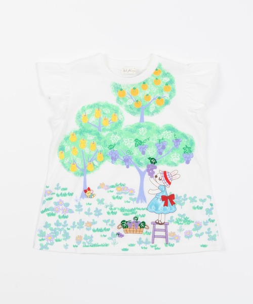 果樹園でフルーツ狩りを楽しむmimiちゃんがモチーフになったTシャツです。プリントとアップリケ刺しゅうの組み合わせでmimiちゃんのかわいい世界観を表現しています♪どんなボトムスにも合わせらせるシルエットなのもポイントです! サイズ展開:80cm~150cm ※こちらのページは100cm~130cmの取扱いです。 80cm~90cmは商品コード:57074172 140cm~150cmは商品コード:57074181です。 【KP/ケーピー】 ヨーロピアンカジュアルをベースに、流行のエッセンスを採り入れながら品があり、それでいて元気な女の子の可愛らしさを表現していきます。 服だけでなく帽子や靴、バッグ . . . . .といった小物まで女の子のさまざまなシーンに対応できるアイテムを提案。