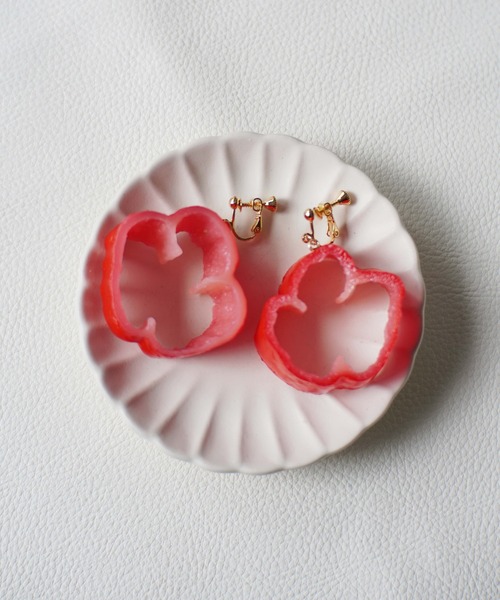 【ii-Fake】ピーマン/パプリカのイヤリング 食品サンプル日本一の畑中氏が手掛ける、商品サンプルアクセサリー『ii-Fake』。国内の自社工場で職人が一つ一つ手作りで作成しております。 海外生産物とは違う、品質の高さと精巧な造りは熟練の技術がなせる業。 TVや雑誌など多くのメディアに取り上げられるなど今大注目のアクセサリーをお試しください! ■食べ物モチーフのアクセサリー、フレッシュベジタブルシリーズ。 つやつやとした鮮やかなビタミンカラーが目を引くピーマン/パプリカのイヤリング♡ 野菜のみずみずしさが忠実に再現されており、お顔周りを明るく彩ってくれます。 まるでお花のようにも見えるデザインが愛らしく、他にはない個性的な一品です◎ ■サイズ イヤリング金具:1.6cmx1.5cm (金色) ピーマン:直径4cm×高さ1.2cm程 パプリカ:直径3cm×高さ0.5cm程 ※ハンドメイド品ですので、個々の形状にばらつきがございます。 ※撮影・モニター環境等により実際の商品の色味と異なって見える場合がございます。 〈商品のお気に入り登録〉 お気に入りの登録をして頂きますと セールの通知・ラスト1点になった時の通知や、再入荷通知を受けることができます♡ 〈ブランドのお気に入り登録〉 新商品の発売や再入荷、タイムセールやクーポン発行のお知らせなど お得な情報を受け取ることができます。