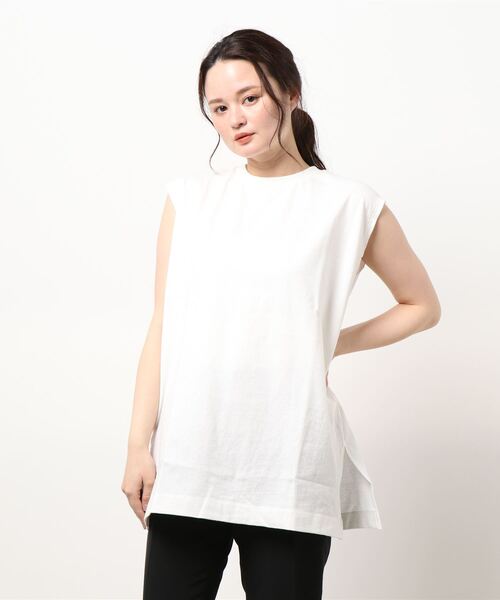 さりげないヌケ感を演出してくれるフレンチスリーブのチュニック。 肩周りや二の腕を華奢な印象に見せてくれるのも嬉しいところ。裾のサイドスリットもこなれたニュアンスをプラスしてくれます。 シンプルな無地で着回し力も高く、ワードローブの定番アイテムとしても重宝しそう。