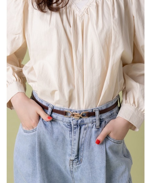 フェイクレザー×ビットデザインが大人っぽく上品な細ベルトビットデザインのバックルがクラシカルな印象を与えるベルト。なめらかなフェイクレザーの質感と、メタリックに輝くゴールドカラーの金具が大人の雰囲気を漂わせます。細めの幅が女性らしく、スタイリングに上品なアクセントをプラスしてくれるアイテムです。※撮影時のライティング、PCやスマートフォンの環境により写真の色味が実際の商品と異なって見える場合がございます。ご了承の上お買い求め下さいませ。※モデル着用画像は実際の色と多少異なる場合がございますのでマネキン画像をご確認ください。《 お知らせ 》▼商品のお気に入り登録お気に入りアイテムの値下げ・再入荷・在庫1点などの通知を受け取ることができます。▼ブランドのお気に入り登録新商品や再入荷、セール、クーポン配布などお得な情報を受け取ることができます。