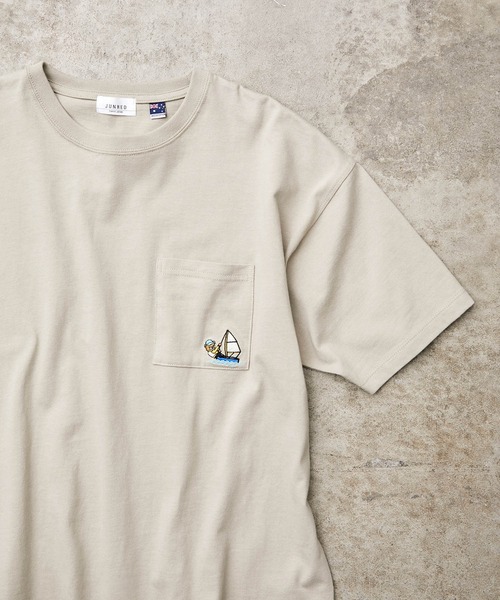 【 ワンポイント クマ刺繍 】BEARハーフスリーブTシャツ 素材・機能 こだわりのオートストラリアコットンを使用しキレイな表情が特徴です。 薄すぎず厚すぎないちょうど良いコットン素材を使っています。安っぽくならず伸び感も良く快適な着心地です。 シルエット、デザイン キャッチーなクマ刺繍をカラー展開でモチーフを変更しています。シンプルながらも際立つ刺繍が可愛くコーデのアクセントになります。 アクティブな動きのある可愛い刺繍をポケットの位置で表現し見て着て楽しい一枚に仕上がっています。 サイズ感は、ほどよいリラックスフィットのTシャツです。 カラー オフ、ミント、ベージュ、ネイビーの4色展開です。シンプルで着用し易くカジュアルな着こなしに最適です。 スタイリング 1枚で着るのはもちろん、ルーズシャツのインナーに着てワンポイント刺繍をチラ見せするのも可愛く着用できます。 さりげなく個性の光るデザインで、周りと差が付く一枚です。 ディテール 左胸PKにくまのモチーフにしたミニ刺繍がアクセントになります。 ----------------------------- 裏地:なし 光沢感:なし 透け感:なし ポケット:あり 伸縮性:なし 生地の厚さ:やや薄手 ----------------------------- 【モデル着用サイズ】 身長177cm 着用サイズL
