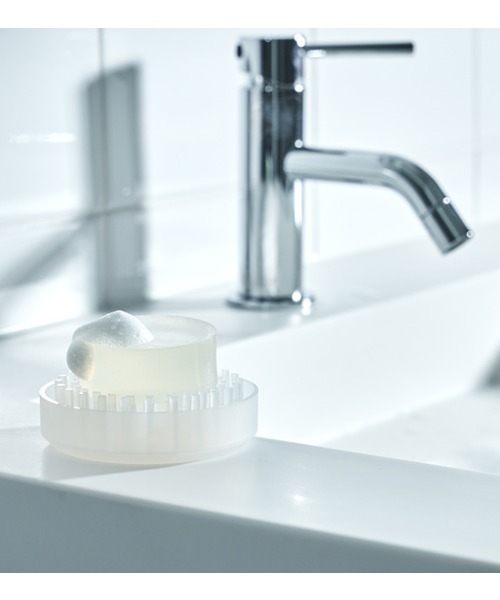 石けん下の力持ち。 突起で支えて、石けんが速く乾き、長持ちするツンツンにミニサイズが仲間入り。コンパクトで置き場所を選ばず、洗面所も水びたしにしません。 洗って乾燥させたい時や、水はけを良くしたいお風呂場ではフチを裏返して置くこともできます。場所によって形を選べるソープディッシュです。 突起で支え、石けんがすぐに乾いて長持ち ツンツンは面ではなく80本の突起の点で支えるので石けんが速く乾きます。水に浸ることもないので石けんが溶けずに長持ち。水洗いする時や乾燥させたい時は、フチを裏返して水はけの良い状態で使用できます。 洗面所に最適なコンパクト設計 スペースが少ない洗面所やキッチンで使用できるようにコンパクトに設計されています。しっかり水をキャッチするので、周囲を水浸しにする心配もありません。 ちょっとした乾燥場所としても 石けんに限らず、スポンジやブラシ、化粧パフやコンタクトレンズケースを乾かす時にちょっと置いておく場所としても。様々な使い方ができるので旅行などにひとつ持って行くと活躍してくれます。 重量:約40g