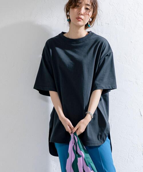 【新色登場】昨年大人気のTシャツが復刻! ~2021 SPRING/SUMMER COLLECTION~ メンズTシャツのような肉厚のラウンドヘム天竺Tシャツ ■デザイン オーバーサイズに仕上げたリラックス感のあるTシャツは、ヒップを覆う着丈と、ゆとりのあるアームで幅広いスタイリングが楽しめる一枚。 シンプルながらも目を惹く大胆なシャツテールの裾がポイントです。 着回し自在のシンプルさながらも、一枚で満足感が得られる主役級の存在感が魅力です。 ■素材 秋まで使えるしっかりとした厚みのある生地。 カジュアルなのに、なんとなくスムース感のある生地感は、デニムとのシンプルなスタイリングも高見えします。 ■スタイリング 太目の袖はロールアップしたアレンジでこなれたスタイリングに。 今シーズントレンドのスリムなリブパンツとも合わせやすいシルエットです。 スタイリングに困らないTシャツなので、昨年からの買い替えはもちろん、色違いでもオススメです。 ................................ 透け感:なし 生地の厚さ:やや厚い 光沢感:なし 裏地:なし 伸縮性:なし 家庭洗濯:可能(ネット使用) ................................ 【注意点】 ※撮影商品はサンプルの為、実際の仕様と異なる場合がございます。 ※画像の商品は光の照射や角度、お使いのモニター環境により、実物と色味が異なる場合がございます。スタジオ物撮りの画像が実物の色味に一番近くなっております。 ※予約商品の場合、実店舗への入荷は「お届け予定」とほぼ同時期となりますが、実店舗への入荷が前後する場合もございます。 品名:FC◆ハイゲージ テンジク ラウンドT 品番:7625-617-0193