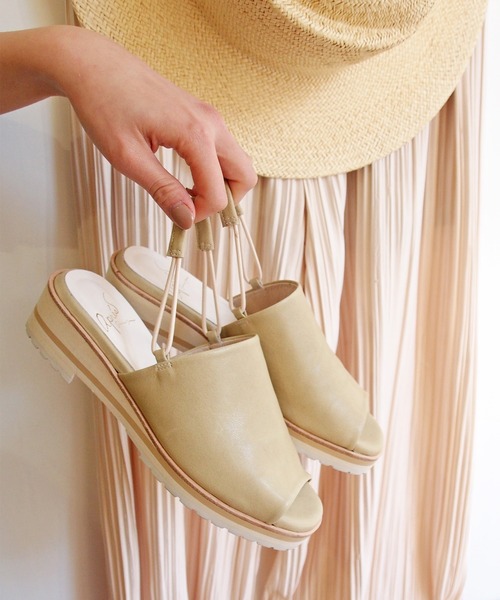 2021 Summer ≪やわらかな革に包まれるソフトレザーサンダル≫ アプレの中でもスポーティなサンダルは、やわらかな一枚革や細丸のゴムひもを使用し、あくまできれいめにまとめました。 リラックス感がある中にも上質さが感じられます。 やわらかなシープレザーで、足を入れるとスムースな気持ちのよい履き心地。 ゴムのバックベルトで脱ぎ履きも簡単です。 厚みのあるEVAソールは軽く、長時間歩いていても響きにくく、また足が疲れにくくなっています。 コーデのワンポイント ヌメピースやソールのベージュカラーでナチュラルな印象なので、今年らしいワントーンコーデにもおススメです。 スポーティなサンダルをきれいにこなしたい方に。 日本の職人が丁寧に作りこんでいくアプレの革靴。 華美な装飾はせずに、上質な素材が醸し出す風合いと、こだわりの詰まったデザインやフォルムを楽しむ大人の女性のための1足です。 【片足の重さ】ブラック約270g/ライトベージュ約235g/グレイッシュベージュ約240g スタッフ着用レビュー <スタッフ・IZ> 足長(実寸):23.3cm 足の形 :エジプト型 ワイズ :D(標準) 足幅も甲の高さも標準です。くるぶしが低めで、外反母趾気味です。 普段は23.5cmを着用しますが、スニーカーやブーツは余裕をもって24.0cmを着用します。 23.5cmを素足で着用しました。足長もワイズもちょうどいい感じです。 カカトのゴムの締めつけ感が全く無いので、素足で履くことが多かったりフィット感を好む方は、ワンサイズ下を選んでも良さそうです。 私はソックスを履いたりもしたいので、通常のサイズにしようと思います。 ■商品について 光の照射や角度により、実物と色味が異なる場合がございます。また表示の色とお届け商品の表記が異なる場合もございますので、予めご了承ください。 厳選された素材を使用しておりますが、水や雨に濡れたり、汗による湿気、乾燥状態での摩擦により革が色落ちし、薄い色の衣服などに色移りする可能性がございます。予めご了承いただき、ご使用の際にはご注意くださいますようお願い致します。 ■返品について 商品の性質上、ご着用後のご返品については お受けすることができません。あらかじめご了承ください ※修理依頼は、カスタマーサポートセンターお問い合わせ「ご注文に関するお問い合わせ」までご連絡ください 商品のお気に入り♡登録をすると完売カラーの再入荷通知や、お得な情報を受け取ることができます。気になる商品は是非登録してみて下さい。