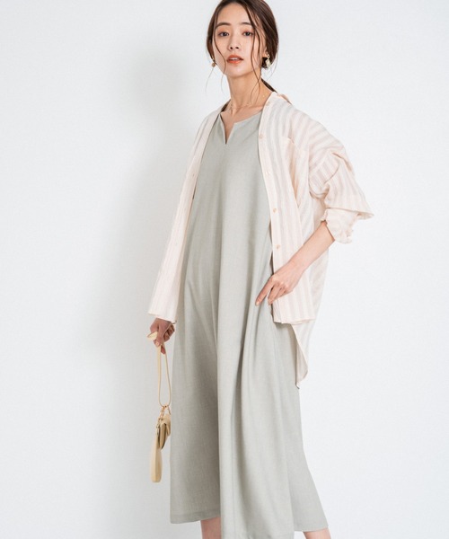 一枚でキレイみえリネン混の程よい光沢感が特徴の、素材を生かしたAラインワンピース。 一枚でサマになるよう、デコルテ魅せしつつインナーが見えないようなデザインに工夫しています。 裾にむかうフレアも広がりを抑えているので、自然に女性らしいラインがキープできます。 真夏にさらりと一枚。それだけで決まるワンピースです。 《セットアップできるパンツもご用意》 こちら【938357】 【素材】 麻調合繊 中肉厚のソフトな風合いでシワになりにくいです。 麻特有の節もありつつ、レーヨンが入っているので程よい光沢感と落ち感があります。 【お手入れ方法】 ストレッチややあり 透け感淡色ややあり 裏地なし ファスナーなし ーーーーーーーーーーーーーーーーーーーーーーー ▼ 商品のお気に入り登録 ▼ 完売カラーの再入荷通知や、ラスト1点の通知、 セールの通知も受け取ることができます。 ▼ ブランドのお気に入り登録 ▼ 新商品や再入荷など、 ブランドのお得な情報をいち早くお知らせ! ぜひご登録ください! ※屋内外の光や照明の当たり具合で、実際の商品の色味とカラー別画像の色味に違いが発生する場合がございます。 色味はスタジオ撮影の詳細画像にてご確認ください。 ※生地の寄り画像が最も実物に近い色味となります。