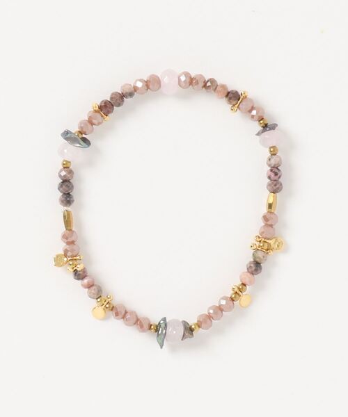様々な素材や形、カラーのビーズをランダムに並べたブレスレット。手作り感漂うナチュラルなデザインが、手元にちょっぴりエキゾチックな雰囲気をもたらします。リゾート気分なスタイリングのポイントにもオススメのアイテム。 【NAKAMOL/ナカモル】 タイ出身のデザイナーのモットーは全ての女性の美しさを引き立てるジュエリーを手頃な価格で作る事。繊細で華やかなデザインながらカジュアルにも使いやすいアクセサリーです。