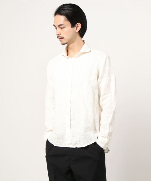 生地を揉み込み柔らかくし、更に叩き起こすことで柔らかく仕上げたリネン100%のワッフル素材。まるでニットの様な柔らかい着心地と凹凸のある生地の肌触りが涼しげな印象をもたらします。無地でも表情のある生地感で、1枚でもサマになります。【SCROLL/スクロール】日本のクラフツマンシップで男性用のシャツを手がけてきた老舗メーカー“フレックスジャパン”の新ブランド「SCROLL(スクロール)」。半世紀以上にわたり、先進性と独創性でシャツを作り続けてきた“シャツのスペシャリスト”が考える、美しいデザイン、ディティール、真面目さと遊び心が高品質な製品を生みだしています。生地の主な素材にコットンとリネンを使用している「SCROLL」は、カジュアルウェアとして着られるだけでなく、ワイシャツのデザインを取り入れてビジネスシーンでも活躍できるシルエット。派手な色や柄よりも爽やかな印象を与えるベーシックな色を中心に展開されています。プロの視点から考えられた「SCROLL」のシャツは、働く男性たちの休日スタイルはもちろん、ビジネスシーンも快適にサポートするブランドです。