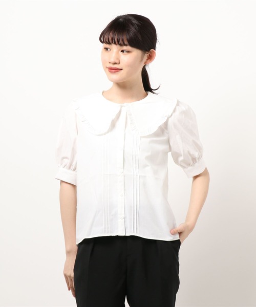 2021 春夏アイテム ふんわりスリーブと大きなフリル襟がガーリーなブラウス。どんなボトムスにも合わせやすくデイリーに活躍します。フロントにはピンタックを入れて表情をプラス。スカートを合わせた着こなしはもちろん、キレイめパンツを合わせた大人キュートな着こなしもおすすめ。ベーシックで合わせやすいカラーが揃っています。・5分袖