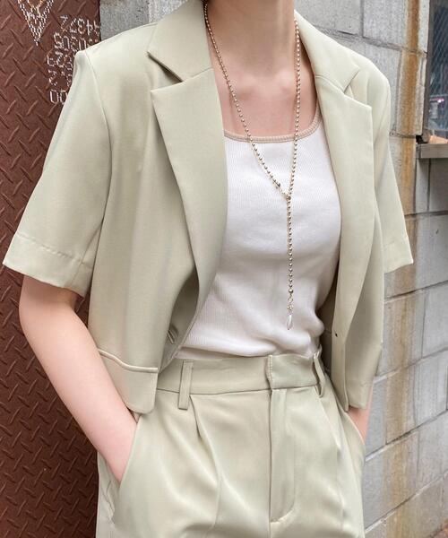 2021 春夏アイテム ベーシックで着回しの効くタンクトップはワードローブの必須アイテム。コンパクトなシルエットでスタイルアップを狙えます。伸縮性のあるやわらかなリブ生地で着心地も快適。配色デザインがシンプルなワンカラーのアクセントになっています。デコルテラインをキレイに見せてくれるスクエアネックと合わせやすいクルーネックの前後2WAYで着られます。 ・伸縮性あり