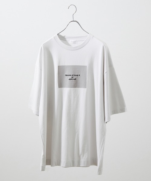 【素材】 厚過ぎず、透け感のない程よい肉感のコットンベースの天竺 【デザイン・シルエット】 肩の落ち感や肘まで隠れるほどの袖丈でトレンド感のあるルーズシルエットTeeです。 フロントにレタリングカードを貼り付けたようなプリントデザインで鏡に映した時や自撮りした時に読める様にミラーデザインにしております。 【カラー】 オフ、サックス、ブラックと着用しやすいボディカラーに対してモードな印象のスモーキーカラーでプリント 【スタイリングポイント】 ワイドシルエットかつ比較的着丈もあるカットソーのためワイドパンツとの合わせのリラックススタイルやスキニーなどの細身のパンツと合わせた上下でメリハリをつけたスタイルもおすすめです。 【ディテール】 後ろ衿ぐりから肩にかけて裏側に伏せテープを入れた仕様にすることで肩の形状が崩れることを軽減しております。 ----------------------------- 裏地:なし 光沢感:なし 透け感:なし ポケット:なし 伸縮性:なし 生地の厚さ:やや薄手 ----------------------------- メンズモデル身長177cm 着用サイズL レディースモデル身長160cm 着用サイズL