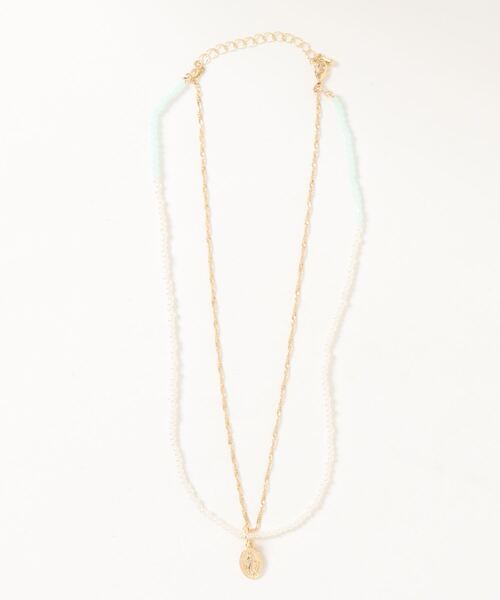 パールとチェーンをMIXしたコンビデザインのネックレス。 トップにあしらったマリアモチーフのワンポイントがアクセントに。異なる素材の2連チェーンがスタイリングに奥行き感をプラスしてくれます。 コーディネートに品良く馴染むショートタイプなのもポイントです。調整可能なアジャスター付き。 ● Green Parks ● (グリーン パークス) 20以上の人気ブランドを取り扱うアパレルセレクトショップ。 ベーシックながらもさりげなくトレンドを取り入れたオリジナルブランドchocol raffine robeも展開。 ▼ 商品のお気に入り登録がおすすめです ▼ 商品ページ内のハートマークをクリック。完売時の再入荷や、最後の1点の通知、コーディネート画像がアップされたとき、お得なお値下げの際の通知を受ける事ができます。 【お知らせ】ページでも通知が確認できます。