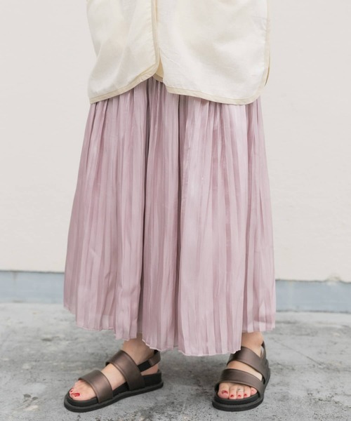 程よい光沢感が涼しげな印象のシャイニー生地を使用したプリーツスカート。ロング丈ながらも、緩やかにAラインに広がるシルエットと軽やかな生地で夏らしいスタイルを演出してくれますよ◎リバーシブル仕様なので、裏返してサテン生地風のスカートとしてもお使いいただけるので着回し力も抜群ですよ!※この商品は、プリーツ加工がしてありますが、保持性は永久ではありません。着用及び洗濯ごとに加工効果は低下します。ご了承ください。※長期間保管する場合、たたまずに必ずハンガーに吊るして保管してください。※その他お取り扱いに関しましては、商品に付属のアテンションタグをご覧ください。※商品画像は、光の当たり具合やパソコンなどの閲覧環境により、実際の色味と異なって見える場合がございます。予めご了承ください。※商品の色味の目安は、商品単体の画像をご参照ください。▼お気に入り登録のおすすめ▼お気に入り登録商品は、マイページにて現在の価格情報や在庫状況の確認が可能です。お買い物リストの管理に是非ご利用下さい。-----------------------------透け感:なし伸縮性:なし裏地:あり光沢:ありポケット:なし-----------------------------