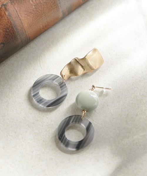 オリジナルアクセサリーライン『CIAOPANIC TYPY lil'』左右アシンメトリーなデザインが魅力のマーブルピアス。目を引くデザインですが柔らかなカラー展開で取り入れやすいのも嬉しいポイント。シンプルなコーディネートにプラスするだけで簡単にこなれた印象を与えてくれます。ちょっとしたギフトにも喜ばれるアイテムです。■CIAOPANIC TYPY lil'■lil'は''little''の短縮形。身に着けた時の小さなときめきや幸せを感じていただきたいのはもちろん、ママに憧れた女の子がおめかしできるようにおそろいで身に着けていただけるアイテムも取り扱います。※画像の商品はサンプルです。 実際の商品と仕様、加工、サイズ、素材が若干異なる場合がございます。気になった商品はお気に入り登録がオススメです! 入荷情報や、クーポン情報が通知されるようになります。
