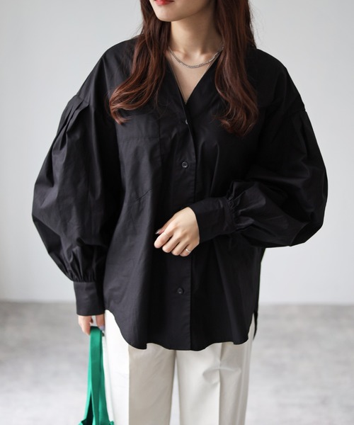 ★パフスリーブVネックシャツ★《スタイリング》 デニムパンツやスキニーパンツ、スカートやワイドパンツなど様々なボトムスと相性抜群! 羽織として使うのも◎ 《ディテール》 オーバーサイズシャツでロングな丈感。 袖のボリューム感がトレンド◎ スタンダードなVネックでデコルテも綺麗に見せてくれます。