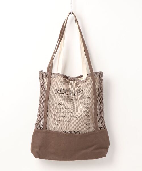 メッシュ×キャンバス素材のセットトートバッグ。メッシュ素材で切り替えた涼しげなデザインはこれからのシーズンコーデにもぴったり。内側のキャンバスバッグにはレシート柄がプリントされており、大人の遊び心をプラスしてくれます。セットでも単品使いでもお使いいただけるので、スタイリングの幅も広がりそう。
