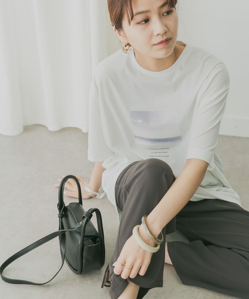 【大人のメンズライクコーデを完成させるフォトTEE】 着心地の良いコットン100%の素材が嬉しいビッグシルエットのTシャツ。 OFFは海を、BLACKには砂浜の写真を採用し夏らしい雰囲気に仕上げました。 写真やロゴは小さめにし、女性らしく大人っぽい印象に◎ POINT ・体型カバーも叶うビッグシルエット ・カジュアルさを抑えた大人っぽいザイン ・合わせやすいベーシックなカラー展開 COORDINATE ゆったりとしたシルエットなので、デニムやタックパンツを合わせるだけで大人っぽい印象に仕上がります。 柄アイテムやデザインボトムとも相性抜群です。 ----------------------------- 透け感:ややあり(OFFのみ) 伸縮性:ややあり 裏地:なし 光沢:なし ポケット:なし ----------------------------- ※商品画像は、光の当たり具合やパソコンなどの閲覧環境により、実際の色味と異なって見える場合がございます。予めご了承ください。 ※商品の色味の目安は、商品単体の画像をご参照ください。