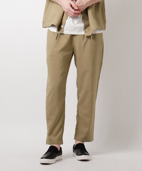 【デザイン】リネンライクな素材感とゆったりとしたワイドシルエットでこなれた雰囲気に仕上げたパンツ。ウエストはゴム仕様で、ドローコード付で調整が可能です。透け感のある薄手生地で、ボリュームがありつつも穿き心地は軽やかです。同素材のシャツ(616-82632)とセットアップでお召頂けます。※ポケット数:横×2 後ろ×2【生地感】ポリエステル100%ならがも、麻を思わせるシャリ感のある薄手生地です。※裏地なし。こちらの商品は主に夏に着用いただける商品です。モデル情報:身長185cm B92 W74 H95 着用サイズ:03(L)店舗へのお問い合わせ商品番号:616-72633●製品寸法:01(S):W~88cm H108cm 股下65cm 前股上32cm 渡り幅32cm 裾幅18cm02(M):W~92cm H111cm 股下66cm 前股上33cm 渡り幅33cm 裾幅18cm03(L):W~96cm H114cm 股下67cm 前股上34cm 渡り幅34cm 裾幅19cm04(LL):W~100cm H118cm 股下69cm 前股上35cm 渡り幅36cm 裾幅20cm備考: