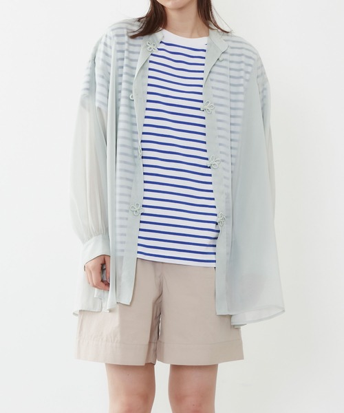 トレンドのチャイナシャツをシーズン感のあるシアー素材で仕立てました。ふんわりと広がるビッグシルエットは羽織りとしてぴったり。ラフなコーディネートに1枚羽織るだけでトレンド感のあるこなれたスタイリングになり、1枚で主役になるおすすめのアイテムです。インナーと合わせやすい、やさしい色合いの3色展開です。 POU DOU DOUプードゥドゥ ひと手間加えた存在感のある「日常着」 いつまでもときめきとかわいいを忘れない方への 愛着を持てるワードローブ