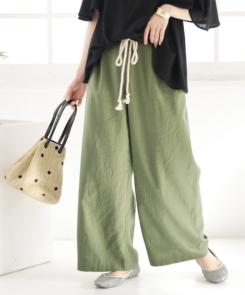 絶妙ワイドシルエット。ウエストのロープベルトがコーデにアクセントを添え、そのまま穿いてもトップスをインしても様になるワイドパンツ。厳選した麻素材にレーヨンをプラスした極上のリネン混素材は、優しくサラッとした肌触り。裏地付きだから透け感を気にせず、安心してご愛用いただけます。≪n'OrLABEL≫風合いリネン混ワイドパンツです。