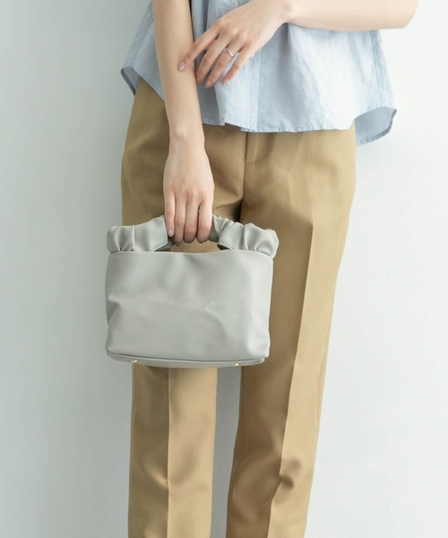 持ち手のくしゅっとしたギャザーがオシャレで、シンプルにどんなお洋服にも合わせやすそうなバッグ。パッと目を引くマスタードと、使いやすいグレーの二色でご用意しました。 ショルダーの長さは内側の結び具合で調節可能です◎紐を外すとハンドバッグやクラッチとしてもお使い頂けますよ。 ※この商品は、摩擦や汗、雨などの使用条件等により、色落ちや他の物への色移りの可能性がございますのでご注意ください。 ※破損の原因になりますので、持ち手を強く引っ張ったり、詰め込み過ぎや極めて重いものを入れて使用しないでください。 ※その他お取り扱いに関しましては、商品に付属のアテンションタグをご覧ください。 総重量 : 約340g ※商品画像は、光の当たり具合やパソコンなどの閲覧環境により、実際の色味と異なって見える場合がございます。予めご了承ください。 ※商品の色味の目安は、商品単体の画像をご参照ください。