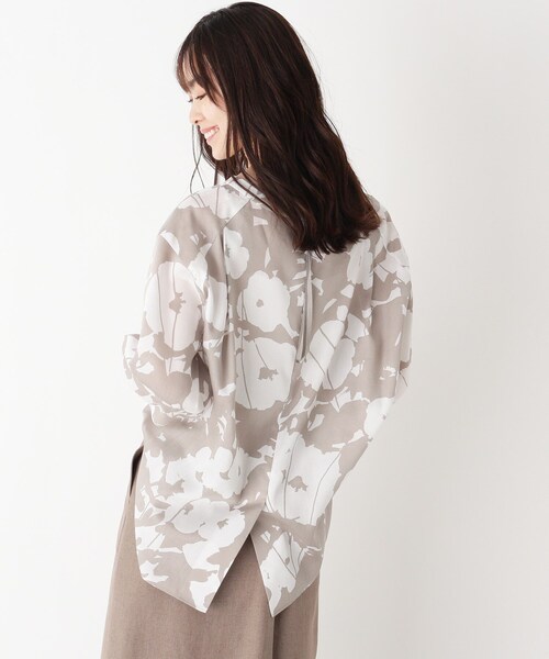 【デザイン】広めのネックラインとゆるっとしたシルエットがくつろぎ感を演出するブラウス。バイカラーが映えるデイジーフラワープリントが可愛らしいインパクトを放ちます。バックファスナーの長いグログランテープが後ろ姿を印象的に演出。【生地感】タテ・ヨコ違う番手を使用し、さらりとした着心地のコットンサテン素材です。こちらの商品は主に夏に着用いただける商品です。モデル情報:身長165cm B70 W55 H83 着用サイズ:40(M/ミセス)店舗へのお問い合わせ商品番号:543-82058●製品寸法:40(M/ミセス):着丈65cm B121cm 袖丈33cm 肩幅54cm42(L/ミセス):着丈66cm B124cm 袖丈33cm 肩幅55cm備考: