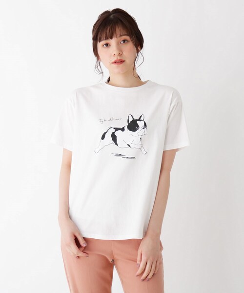 【デザイン】 クリクリおめめのワンちゃんがたまらなく愛らしいTシャツ。 ラウンドヘムのやさしいムードともマッチして、Tシャツスタイルにユーモアとチャーミングさを運んでくれます。 【生地感】 コットン(綿)天竺。 ※オフホワイト(003)は透け感があるため、インナーの着用をおすすめします。 【サイズ】 小さいサイズSサイズあり。※01(S)サイズはWEB限定サイズです。 #CutieBlonde#Cutie#cutieblonde#cutie#キューティブロンド#キューティ#20代#30代 モデル情報:身長166cm B78 W58 H82 着用サイズ:02(M) 店舗へのお問い合わせ商品番号:256-12340 ●製品寸法: 01(S):着丈58cm B102cm 袖丈17cm 肩幅46cm 02(M):着丈59cm B105cm 袖丈17cm 肩幅48cm 03(L):着丈60cm B108cm 袖丈18cm 肩幅50cm 備考: