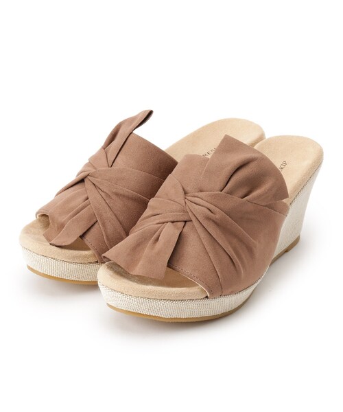 【デザイン】スポッと履きやすいウエッジソールのサンダル。アッパー部分にはカラーによって異なる生地を結んだデザインをほどこし、お洒落なアクセントに。まがるソールとふかふかのインソールで履き心地らくちんです。【サイズ】※25(22.5cm)はWEB限定サイズです。店舗へのお問い合わせ商品番号:F97-12019●製品寸法:25(22.5cm):対応サイズ22.5cm ヒール高8cm 幅7cm プラットフォーム2.5cm35(23.5cm):対応サイズ23.5cm ヒール高8cm 幅7.2cm プラットフォーム2.5cm45(24.5cm):対応サイズ24.5cm ヒール高8cm 幅7.5cm プラットフォーム2.5cm備考:重量:45(24.5cm)片足約225g