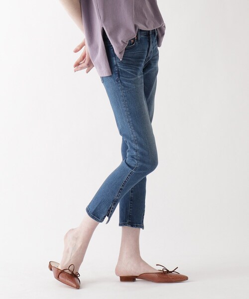 【JET LOSANGELES】JET定番SANTAMONICAのクロップド丈デニム。自然に吸い付くような程良いフィット感、レッグシルエットは女性的な綺麗なシルエットに拘った一枚です。正面から見たときのウエストラインはまっすぐにすることでメンズライクな顔になり、穿く人の女性らしさを引き出す効果を生み出すポイントになっています。サイドからの切り替えデザインでスリットを施したデザインも特徴的です。シルエットを保ったまま、前から見たときのデザインも効いたデザインになっています。パンプスやサンダルを合わせればチラッと覗く女性らしさを演出できるディティールに。※ポケット数:横×3、後ろ×2【生地感】カイハラデニムの中でもインディゴの濃さとVINTAGEな表情が特徴的。SANTA MONICAのFIT感をサポートするのは、この素材の特性である程よい肉感と反発力と柔らかさ。程よい肉感と反発力は体のラインを手助けしてくれます。こちらの商品は主に春に着用いただける商品です。モデル情報:身長170cm B80 W59 H85 着用サイズ:26(S)店舗へのお問い合わせ商品番号:C80-62011●製品寸法:23(XXXS):W62cm H76cm 股下65cm 前股上19cm 渡り幅23cm 裾幅13cm24(XXS):W64cm H77cm 股下65cm 前股上19cm 渡り幅23cm 裾幅13cm25(XS):W66cm H78cm 股下66cm 前股上19cm 渡り幅24cm 裾幅14cm26(S):W68cm H80cm 股下66cm 前股上19cm 渡り幅24cm 裾幅14cm27(M):W70cm H82cm 股下67cm 前股上20cm 渡り幅25cm 裾幅15cm28(L):W72cm H84cm 股下67cm 前股上20cm 渡り幅26cm 裾幅16cm備考: