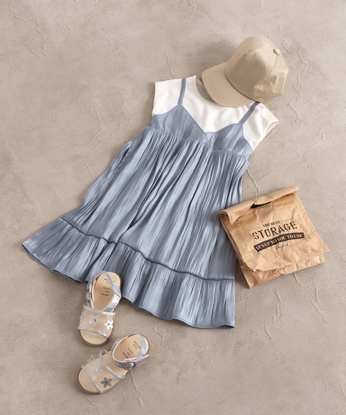 程よい光沢感のあるポリエステルサテンで写真映えも狙える高見えワンピース。華やか可愛いレースで上品な印象に* ワッシャープリーツにすることによって繊細で軽やかな風合いに仕上げました。 スカラップデザインになっているレースの袖・裾部分など、こだわりのディテールにも注目♪ 色味はトレンドのくすみ感も残しつつ、夏らしいカラーで旬な雰囲気に◎ レースやチュールなど女の子らしいものが好きという方必見♪ ※商品の特性上、折ジワや着用時のシワがつきやすくなっております。