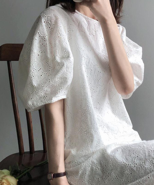 総レースでロマンティックに仕上げたワンピース ■デザイン さらりと着こなすだけで清楚なムードを醸す1着です。 今期トレンドのボリュームスリーブや裾のカットを施し贅沢な仕上がりに。 爽やかで華やかな一枚 ■素材 さらっとした気持ちのいい素材。 肌に張り付かず夏にぴったりの生地感です。 ■スタイリング さらっと一枚でキマル大人なデザイン。 アクセサリーが映えるので、お手持ちのアクセサリーで華やかに。 足元は抜け感の出るサンダルがオススメです。 【モデル着用サイズ】 全色モデル身長:162cm、着用サイズ:M