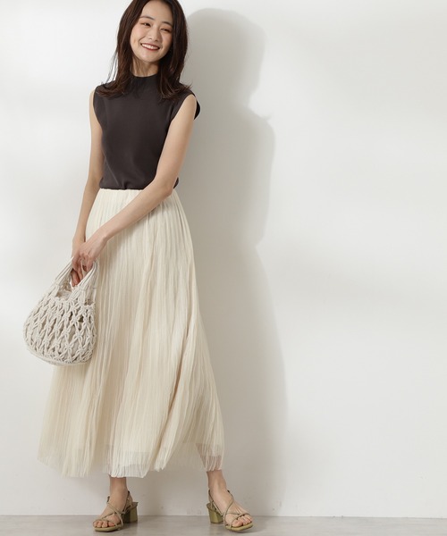 エアリー感のあるワッシャーチュールスカート。表情感のあるワッシャーチュール生地を使用しています。ウエスト周りのボリュームをおさえつつ、ふんわりとした動きのあるシルエットです。裾は裏地との差丈で軽やかさと奥行きをプラス。シンプルなトップスをINしてキレイめにまとめても、カジュアルなTシャツ合わせも楽しめます。※裏地付き