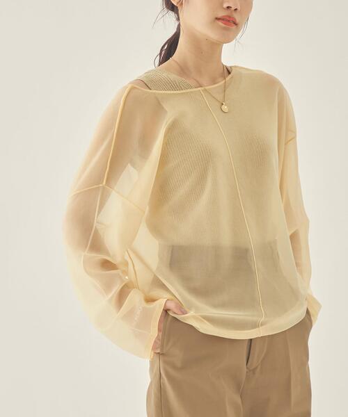ニットインナーとロンT感覚で着れるシアーニットのセット。 春から夏まで長く使える、一押しマルチウェイトップスです。 【デザインポイント】 ・インナー:パット付き。ヘルシーな背中のV開き ・シアートップス:前後2WAY仕様。Uネックが今年の気分にぴったりでヘルシーな印象。 ------------------------------------------------------------ 【注意事項】 ・画像の商品はサンプルです。実際の商品と色味、仕様、加工、サイズ、素材等が若干異なる場合がございます。 ・商品の色味は、撮影場所や光のあたり具合などにより色味が違って見える場合がございます 。 また、お客様のお使いのPCのモニター環境などにより色味が違って見える場合がございます。 詳しくは、着用画像以外の商品詳細画像をご確認ください。 *予約品について* ・工場生産の都合上、お届けする時期が前後する場合がございます。 ・限定数量に達し次第、締め切りとなります。 ------------------------------------------------------------ こちらの商品はグリーンレーベル リラクシングの一部店舗・WEBストアのみでの展開となります。 店舗へお問い合わせの際は、下記の品名/品番をお申し付け下さい。 品名:EM シアー×アメスリ マルチWAY SET 品番:66136991303