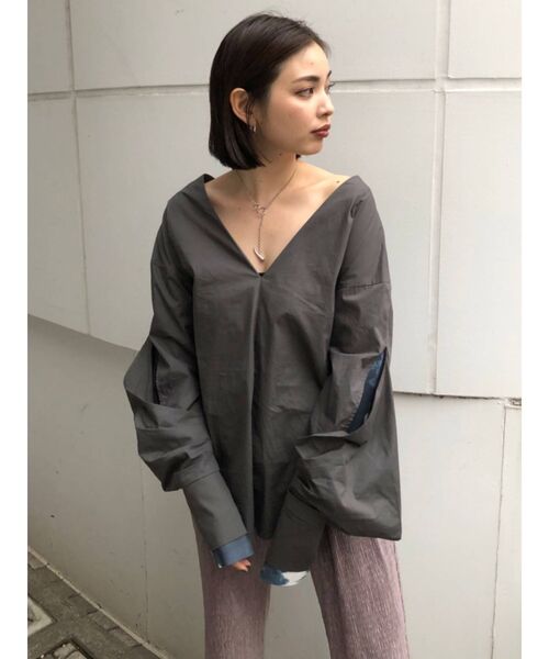 ■1枚でモードになるレイヤードトップス■ブロードと柄シフォンの袖レイヤードがポイントのデザインシャツです。トレンドのタイダイ柄がチラ見えする嬉しいデザイン。深めのVネックでデコルテを綺麗にみせてくれます。着丈長めでヒップ回りをカバーしてくれます。デザイン性が高いアイテムなので、スキニーデニム、フレアパンツ、ミニスカートなどシンプルなアイテムとのスタイリングがおすすめです。※画像の商品はサンプルです。実際の商品と色味、仕様、加工、サイズ、素材等が若干異なる場合がございます。----------------透け感:なし生地の厚さ:薄手裏地:なし伸縮性:なし----------------【トクする便利機能】♡商品のお気に入り登録再入荷時、ラスト1点の時、セール開始時にお知らせします。♡ブランドのお気に入り登録新商品や再入荷、セール情報など、ブランドのお得な情報を受け取ることができます。是非ご活用ください!