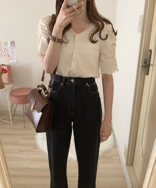 - レトロかわいいパワショルトップス - 飾りのボタンが付いたカーディガン風トップス♪ 表面感のあるラメ見えな生地がレトロかわいい* ギャザーの寄せられたパワショル袖、 フリルがあしらわれた裾など、 ディティールに与えられたデザインが可愛さをさらに盛り上げます◎ コンパクトなサイズ感なので ワイドシルエットのパンツやロング丈のスカートなど ボリューム感の出るボトムスとも相性抜群◎ デニムなどでヘルシーに着こなすのも、 柄スカートでガーリーに着こなすのも◎ ********** 透け感…ややあり 裏地…なし 伸縮性…あり 光沢感…ややあり 生地の厚さ…薄い ********** ※撮影場所やお使いのモニター環境により若干お色味が異なる場合がございます。 ■商品のお気に入り登録■ ラスト1点の通知やセール通知、また完売していても再入荷時に再入荷通知を受け取ることができますので、是非ご登録ください♪ ■ブランドのお気に入り登録■ 新商品や再入荷など、お得な情報を受け取ることができます!ぜひご活用ください!